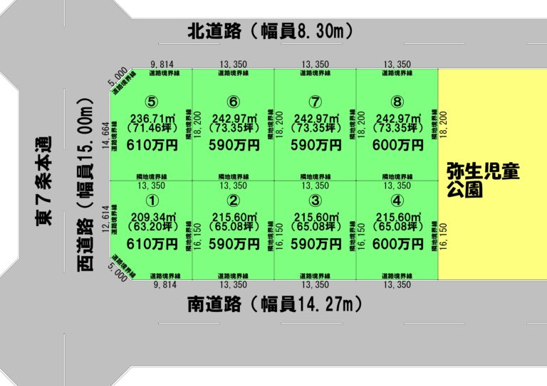 河西郡芽室町東七条八丁目1番地にあります「建築条件付土地」を販売しております。各区画の価格は590万円~610万円、面積は209㎡~242㎡。新築をご希望される方を対象としております。プランのご相談等お気軽にお問合せ下さ […]